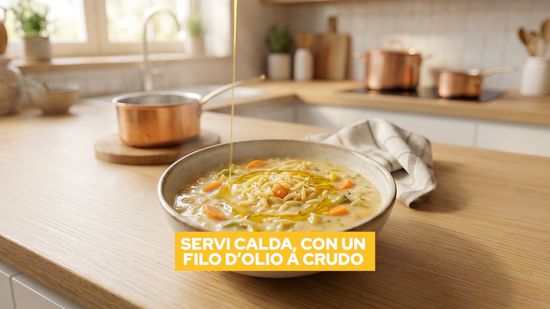 Servi calda, con un filo d’olio a crudo.